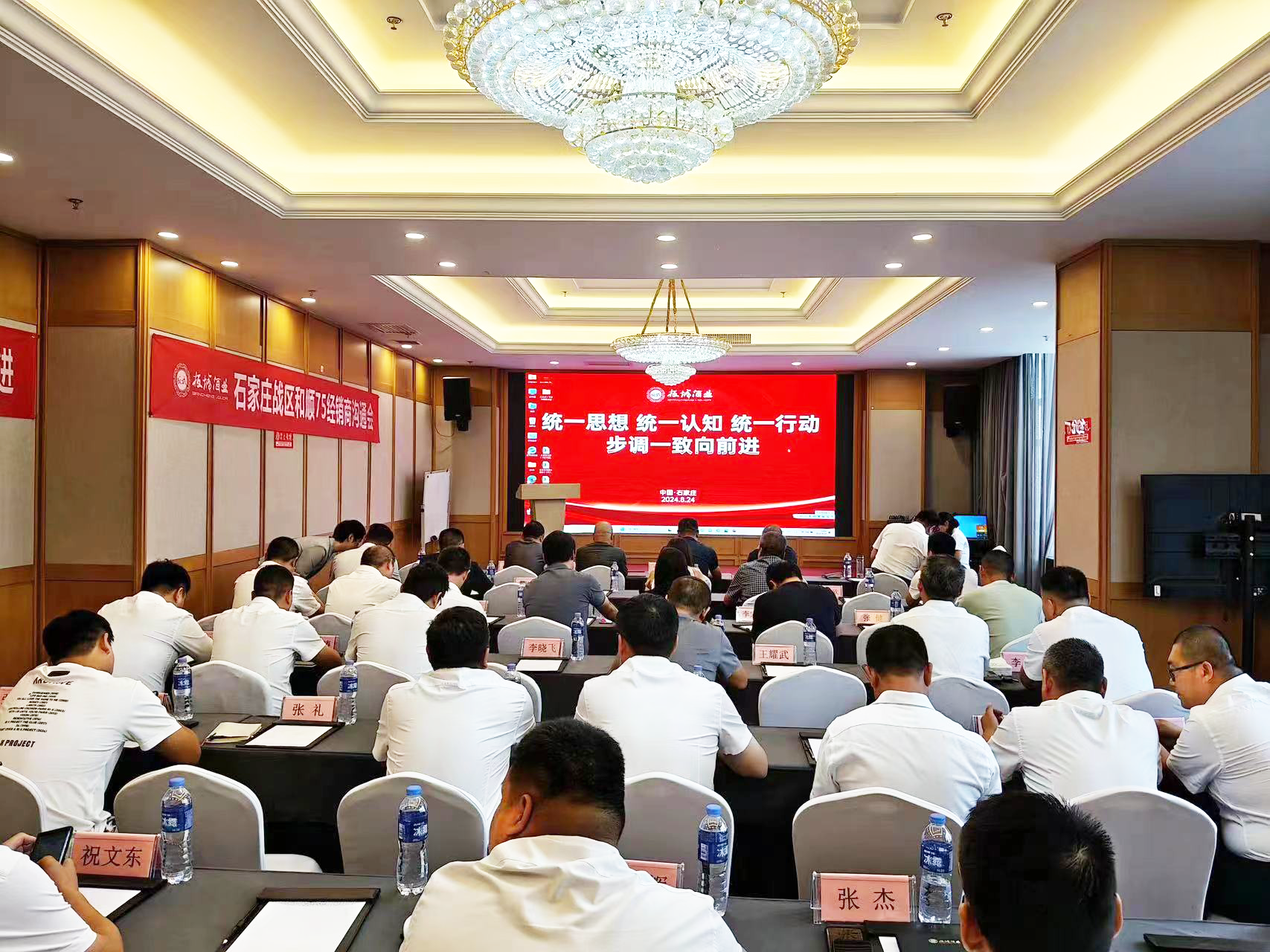 板城酒業(yè)石家莊戰(zhàn)區(qū)和順部銷售總監(jiān)王小會(huì)、石家莊中部戰(zhàn)區(qū)和順部區(qū)域經(jīng)理陳強(qiáng)、石家莊北部戰(zhàn)區(qū)和順部區(qū)域經(jīng)理?xiàng)罱 ⑹仪f南部戰(zhàn)區(qū)區(qū)域經(jīng)理段紅偉與業(yè)務(wù)團(tuán)隊(duì)以及經(jīng)銷商代表出席本次會(huì)議。在會(huì)上,大家圍繞公司戰(zhàn)略落地、廠商思想統(tǒng)一、銷售模式創(chuàng)新等關(guān)鍵議題展開了深入交流與探討,共同為區(qū)域市場的繁榮發(fā)展獻(xiàn)計(jì)獻(xiàn)策。