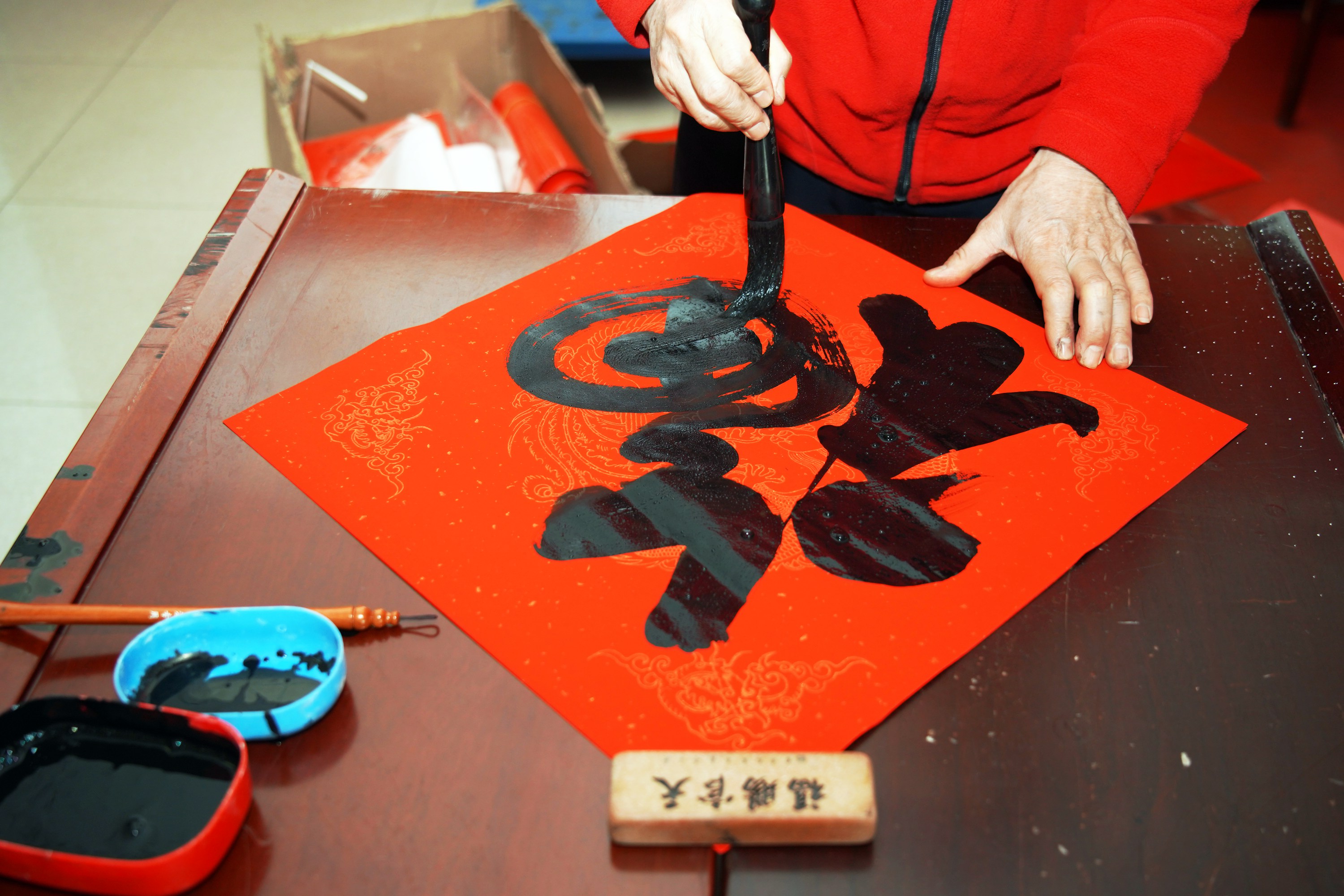 書寫對(duì)聯(lián)迎新春,奮筆揮毫送和順。自12月24日,承德縣“文化進(jìn)萬家歡喜過大年”暨“諸事和順迎新春幸福春聯(lián)送萬家”文化惠民系列活動(dòng)啟動(dòng)以來,板城酒業(yè)攜手承德縣文聯(lián)、承德縣書法家協(xié)會(huì)共同走進(jìn)承德縣華明產(chǎn)業(yè)園、承德縣中心廣場(chǎng)、承德縣六溝鎮(zhèn)葛杖子村、承德縣信訪局等基層社區(qū)、鄉(xiāng)鎮(zhèn),為全縣城、鄉(xiāng)鎮(zhèn)居民送上了一份精心烹制的“文化大餐”。