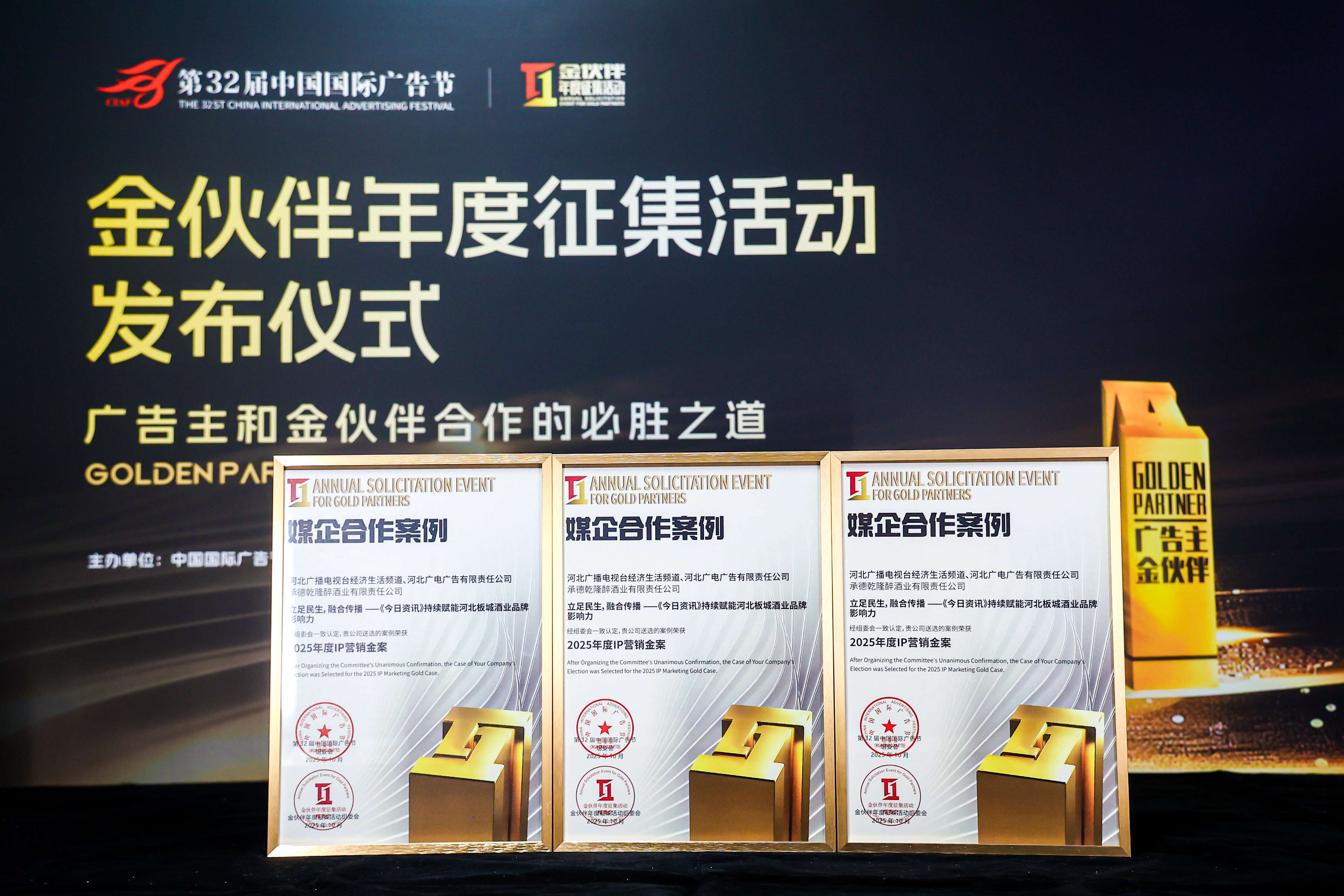同時,板城酒業(yè)與河北衛(wèi)視合作的“一城一韻,龍印鑒風華2025承德酒文化節(jié)暨龍印秋藏大典推介會”案例榮獲2025年度活動營銷金案。