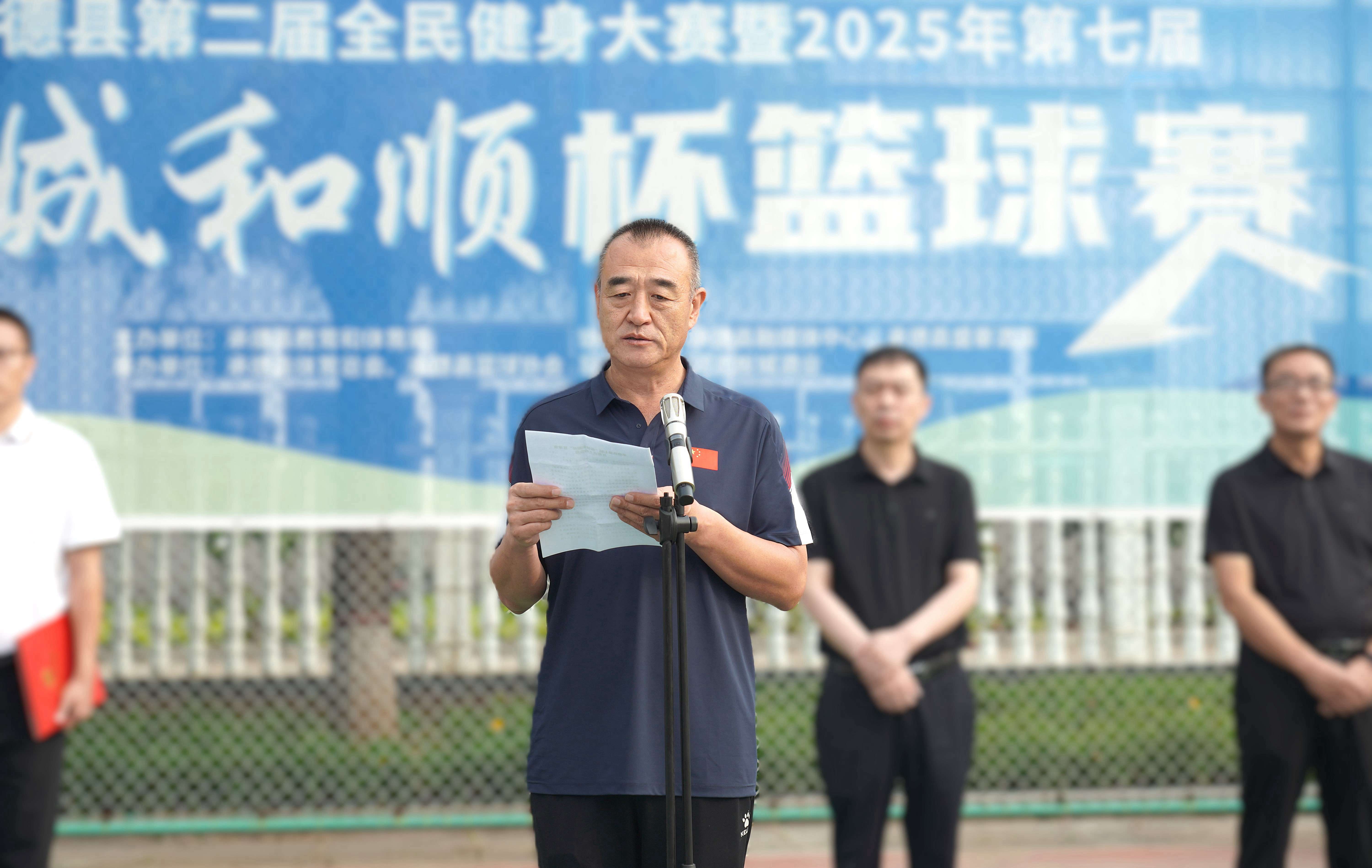 承德縣教育和體育局體育工作指導(dǎo)中心主任朱瑞東發(fā)表致辭,朱主任講到:“縣教體局聯(lián)合板城酒業(yè)持續(xù)舉辦體育賽事活動(dòng),連續(xù)舉辦七屆‘板城和順杯’籃球賽事,為承德縣全民健身提供了重要平臺(tái),縣教體局將持續(xù)開(kāi)展全民健身活動(dòng),搭建全民健身平臺(tái),開(kāi)展形式多樣的體育活動(dòng),讓承德縣人民參與多種體育賽事。”
