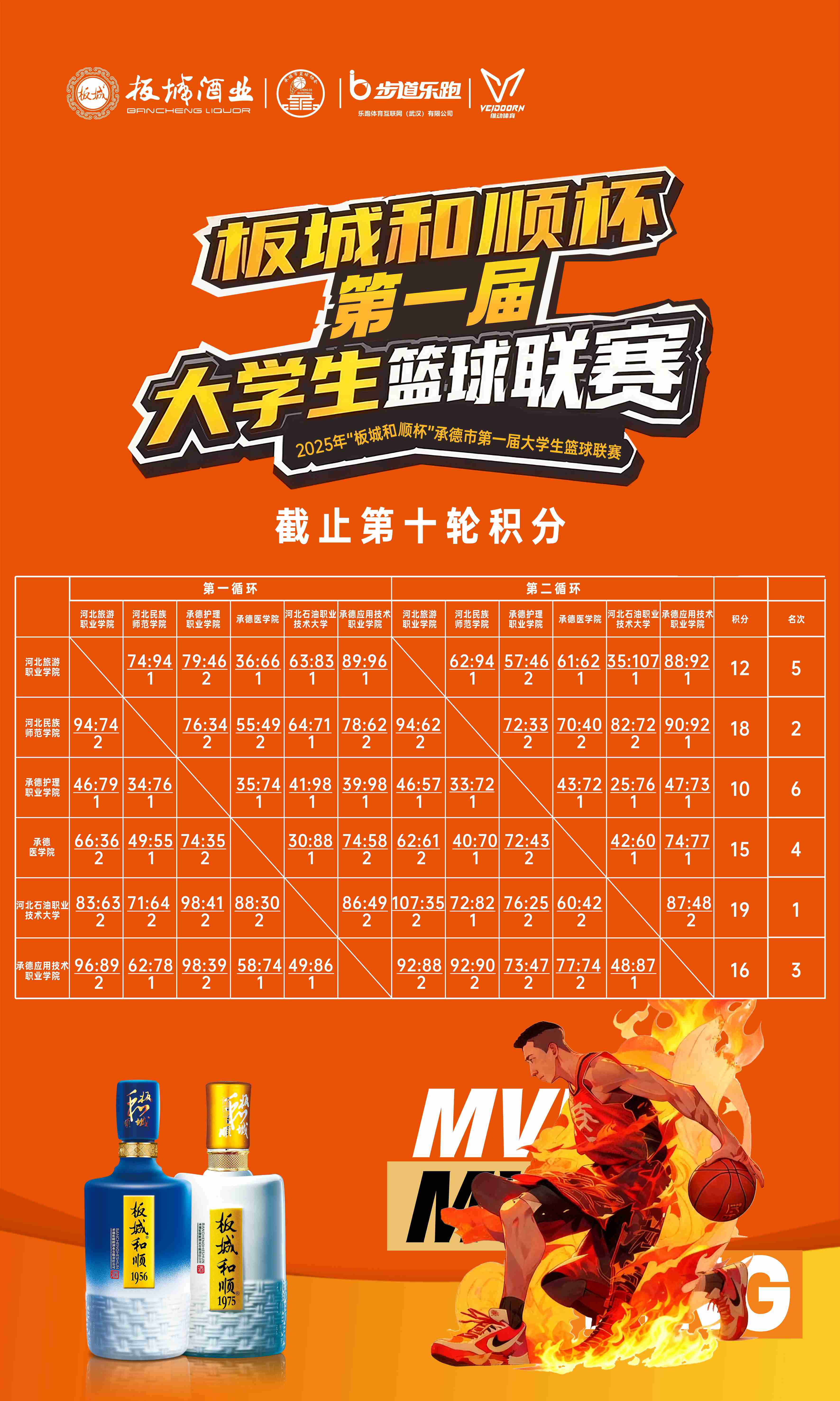 賽事精彩對決,燃動(dòng)大學(xué)校園,30場比賽對決,每場比賽由獲勝隊(duì)伍選出mvp球員,板城酒業(yè)為每位MVP選手送上鑒證重大時(shí)刻的龍印美酒。